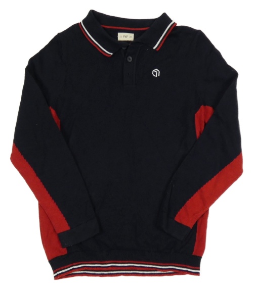 Tmavomodro/vínový svetr s výšivkou a pruhy a límečkem F&F
