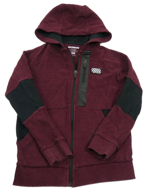 Vínová žebrovaná prpopínací mikina s nášivkou a kapucí F&F