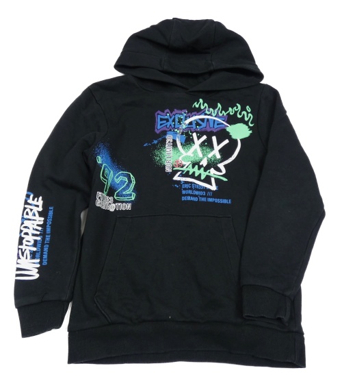 Černá mikina s lebkou a nápisy a kapucí George