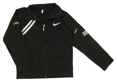 Černá žebrovaná sportovní propínací mikina s pruhy Nike
