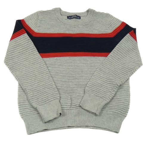 Šedo-modro-červený pruhovaný svetr