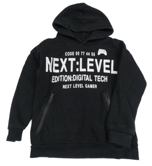 Černá mikina s nápisy a ovladačem a kapucí Tu