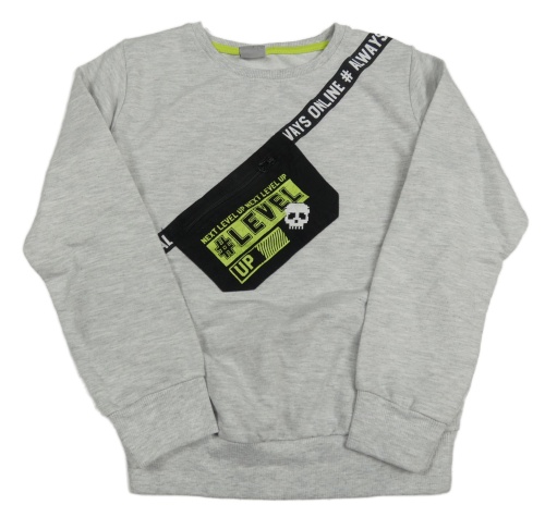 Šedá melírovaná mikina s černou kapsou a nápisem Y.F.K.