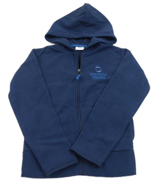 Tmavomodrá fleecová propínací mikina s nápisem a kapucí