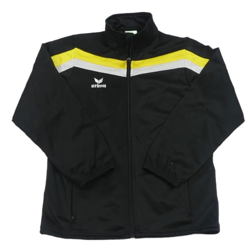 Černá sportovní propínací mikina se žlutým pruhem a logem erima