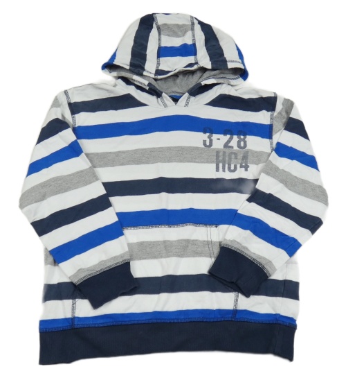 Bílo-šedo-modrá pruhovaná mikina s nčíslem a kapucí George