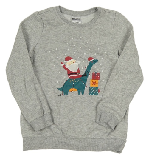 Šedá melírovaná mikina se Santou a dinosaurem Pocopiano