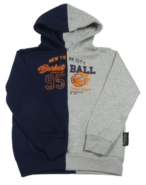 Tmavomodro-šedá mikina s potiskem a kapucí
