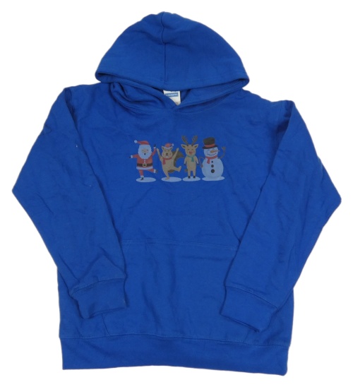 Modrá vánoční mikina s obrázky a kapucí Famona