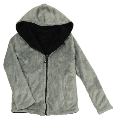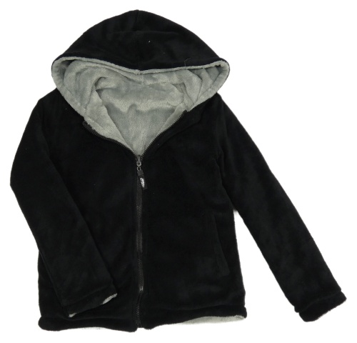 Černá chlupatá oboustranná propínací mikina s kapucí