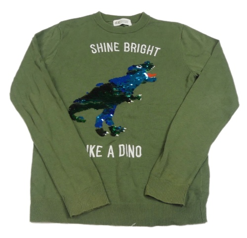 Khaki svetr s dinosaurem z překlápěcích flitrů H&M