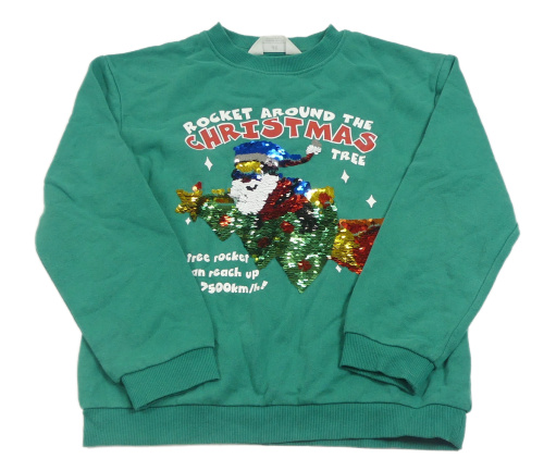 Zelená mikina se Santou z překlápěcích flitrů H&M