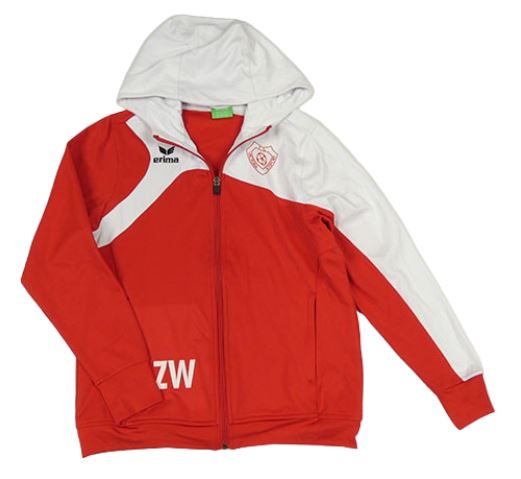 Červeno-bílá sportovní fotbalová propínací mikina se znakem a kapucí erima