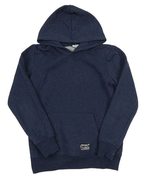Tmavomodrá melírovaná mikina s kapsou a nášivkou a kapucí Chapter young