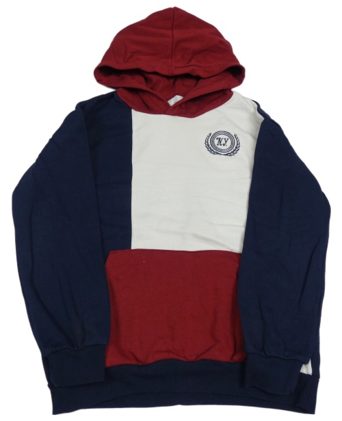 Tmavomodro-bílo-vínová mikina s písmenky a kapsou a kapucí H&M