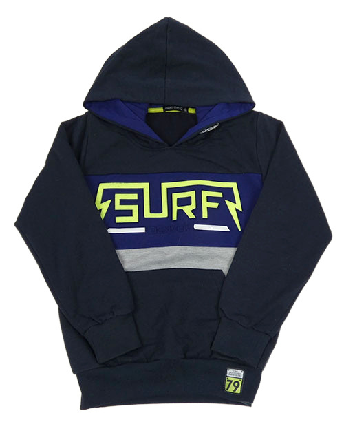 Tmavomodro-šedo-safírová mikina s 3D nápisem a kapsou a kapucí SMALL GANG