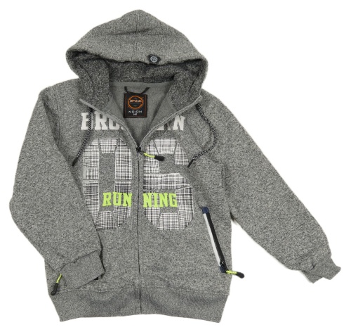 Šedá melírovaná propínací mikina s nápisem a kapucí