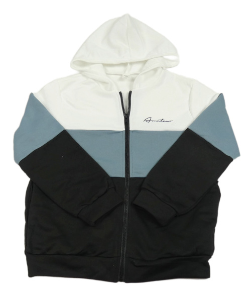 Bílo-modro-černá propínací mikina s nápisem a kapucí Shein
