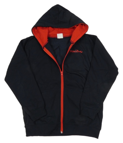 Černo-červená propínací mikina s nápisem a kapucí Awdis