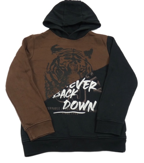 Černo-hnědá mikina s tygrem a nápisem a kapucí Nutmeg