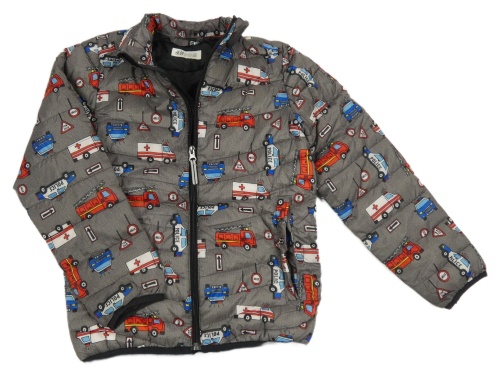 Tmavošedá šusťáková prošívaná lehká zateplená bunda se záchranáři H&M