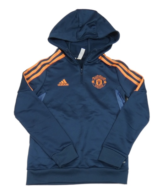 Tmavomodro-modrá funkční fotbalová mikina Manchester United s kapucí Adidas