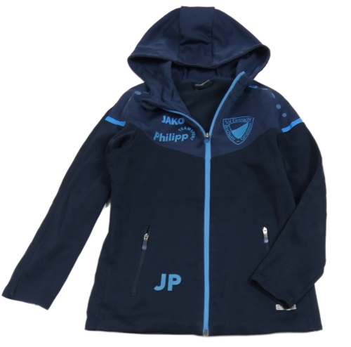 Tmavomodrá propínací thermo mikina s nápisy a kapucí Jako