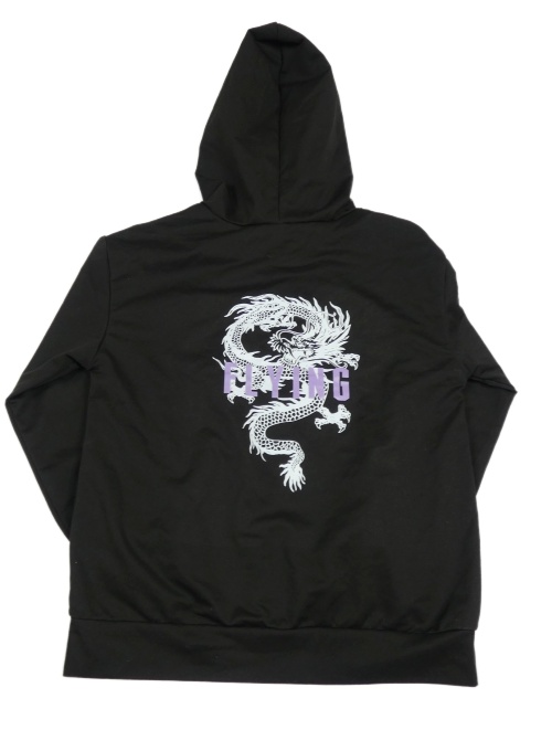 Černá sportovní mikina s nápisem a kapucí
