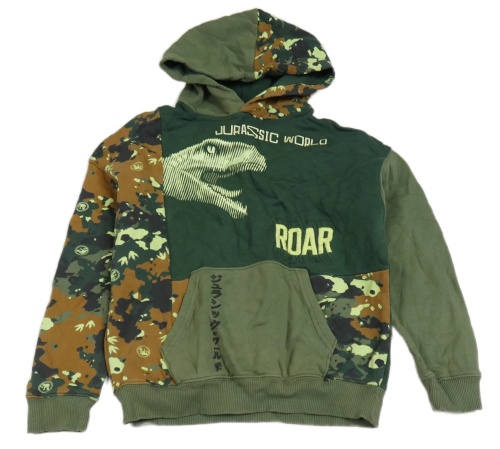 Khaki-hnědá vzorovaná mikina s dinosaurem a kapucí - Jurský svět