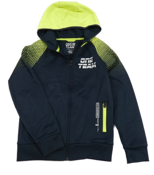 Tmavomodro-neonově žlutá sportovní propínací mikina se vzorem a kapucí
