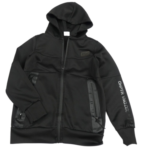 Černá thermo propínací mikina s nášivkou a nápisem a kapucí Chapter young