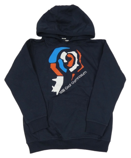 Tmavomodrá mikina s potiskem a kapsou a kapucí