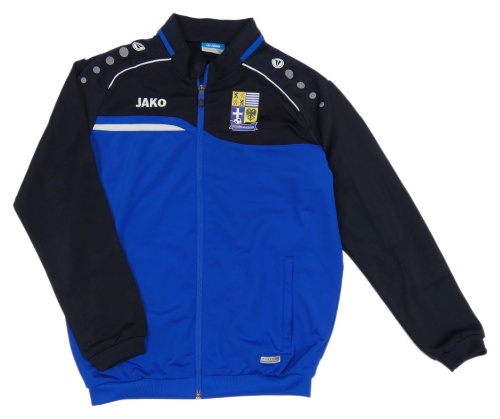 Safírovo-tmavomodrá funkční fotbalová propínací mikina s erbem JAKO