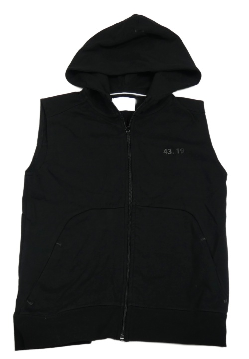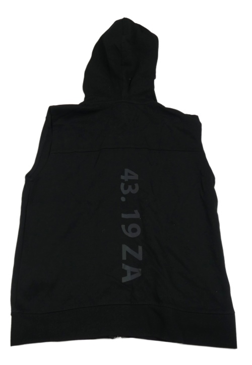 Černá tepláková propínací vesta s nápisem a kapucí
