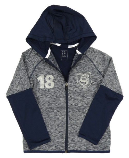 Tmavomodrá melírovaná propínací sportovní funkční mikina s číslem a kapucí Artengo