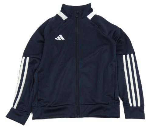 Tmavomodrá sportovní funkční propínací mikina s pruhy a logem Adidas