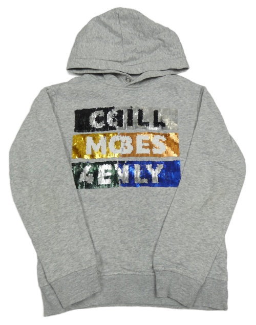 Šedá melírovaná mikina s překlápěcími flitry s nápisy a kapucí H&M