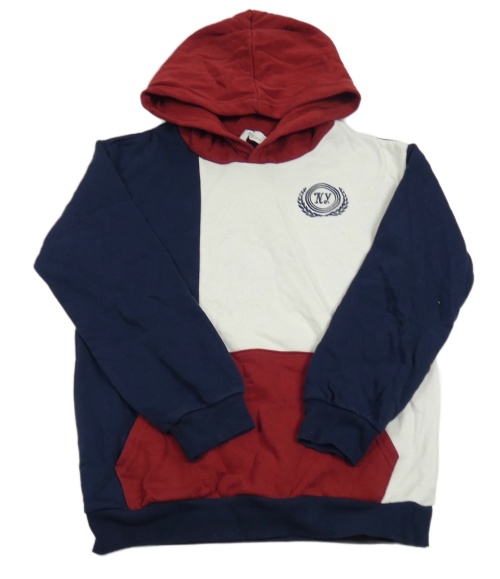 Tmavomodro-červeno-bílá mikina s výšivkou a kapucí H&M