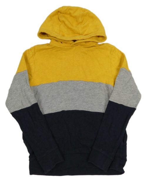 Žluto-šedo-tmavomodrá mikina s kapucí Next