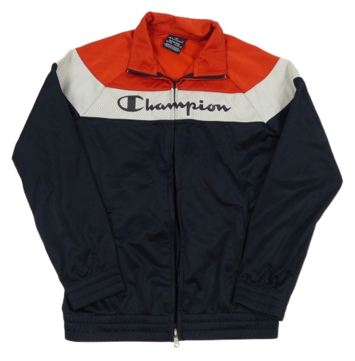 Tmavomodro-červeno-bílá sportovní propínací mikina s logem Champion