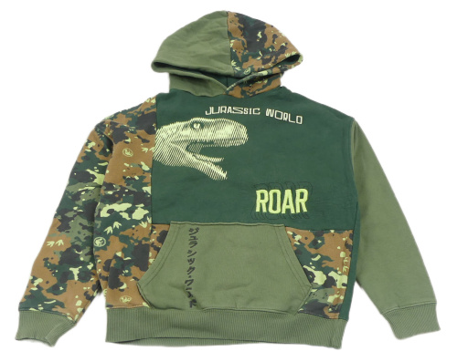 Tmavozeleno-vzorovaná mikina s dinosaurem a kapucí - Jurský svět