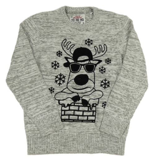 Šedo-bílý melírovaný svetr se sobem a vločkami C&A