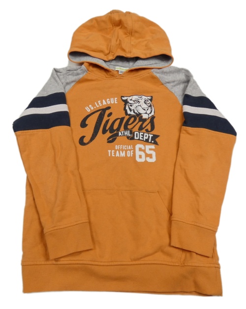 ORanžovo-šedo-tmavomodrá mikina s potiskem a kapucí Vertbaudet