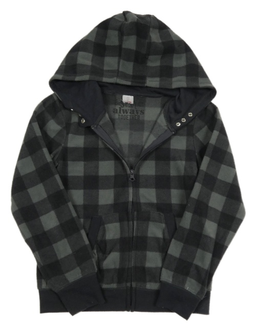 Černo-šedá kostkovaná fleecová propínací mikina s kapucí C&A
