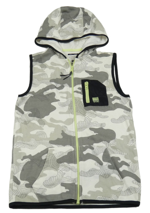 Bílo-šedá army propínací vesta s kapsou a kapucí F&F