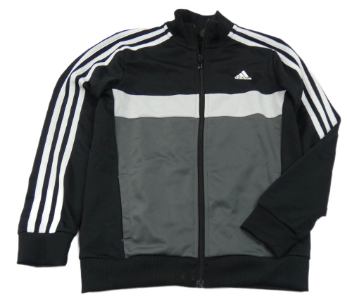 Černo-šedo-bílá sportovní propínací funkční mikina s pruhy Adidas