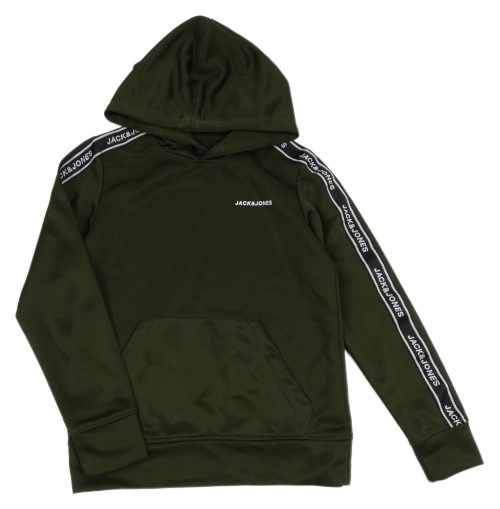 Tmavokhaki sportovní mikina s nápisem a kapucí Jack & Jones
