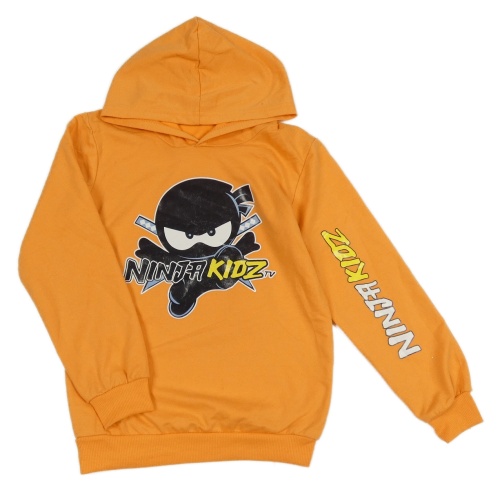 Pomerančová mikina s potiskem a kapucí