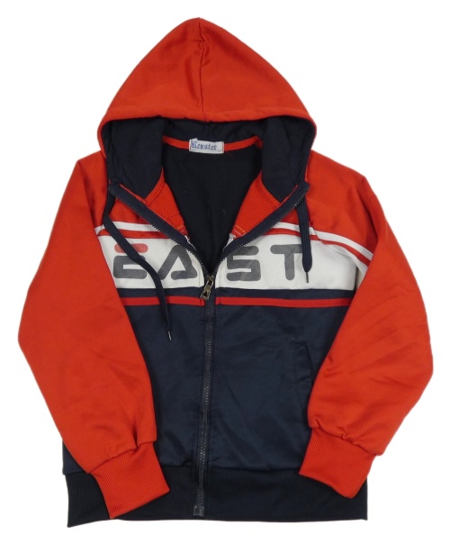 Červeno-tmavomodro-bílá propínací mikina s nápisem a kapucí