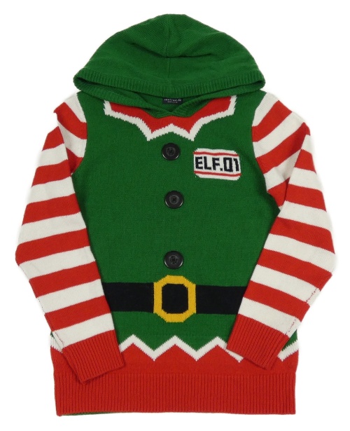 Zeleno-pruhovaný svetr s kapucí- Elf Next